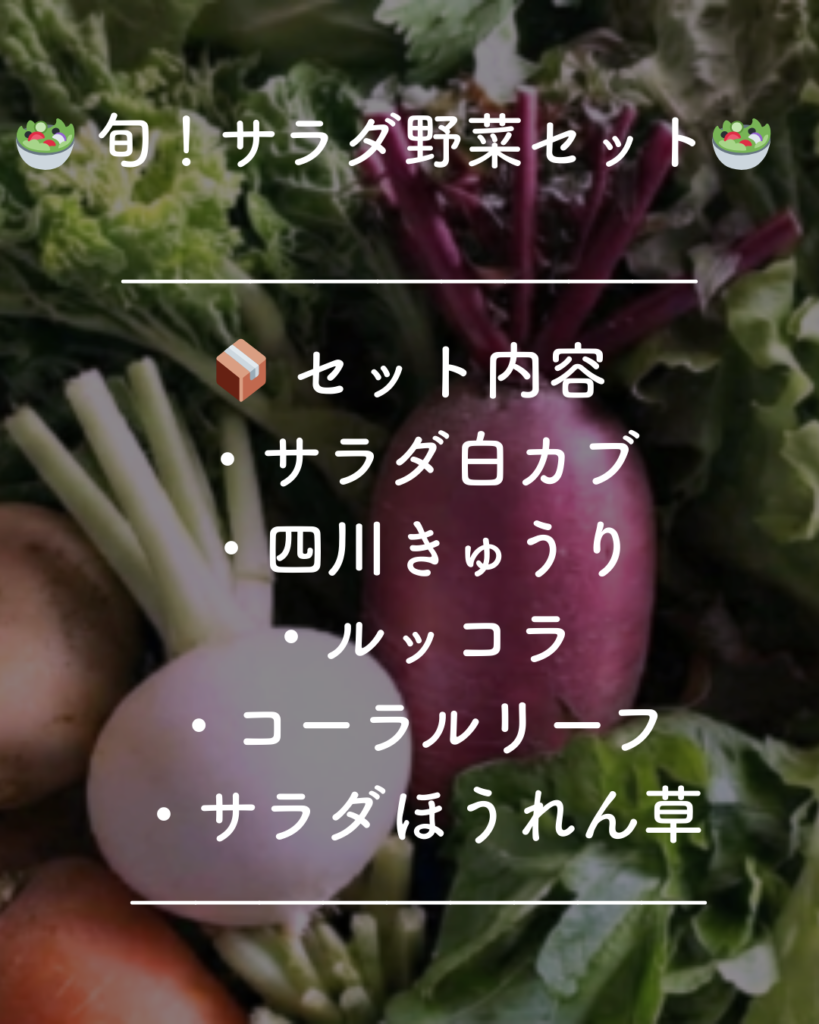 サラダ白カブ|四川きゅうり|ルッコラ|コーラルリーフ|サラダほうれん草