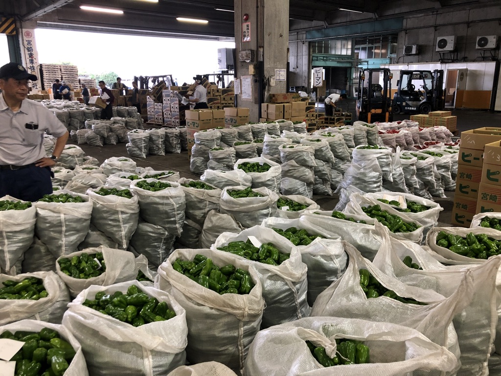 ピーマンの競りも圧巻です。