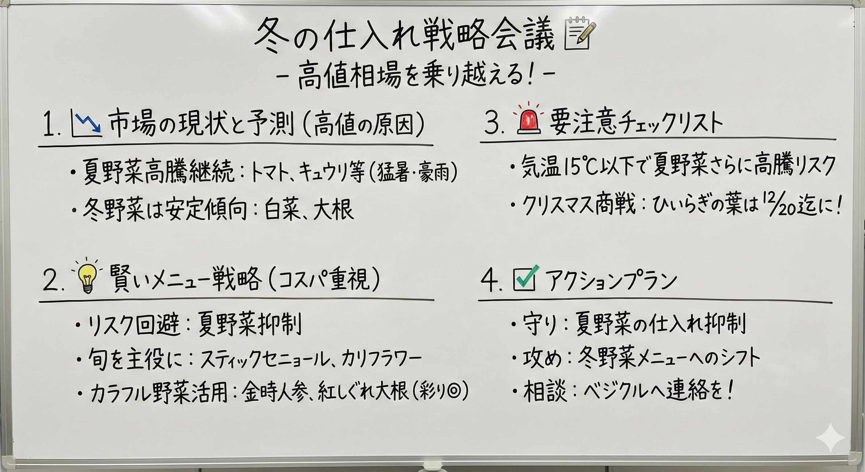 ・冬野菜の価格安定を活かした“メニューの組み替え”