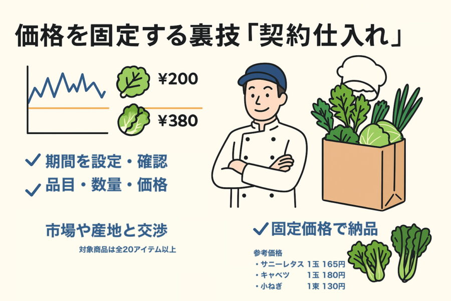・価格変動の激しい野菜は「契約仕入れ」で固定化