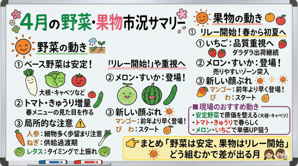 「野菜は安定、果物はリレー開始」