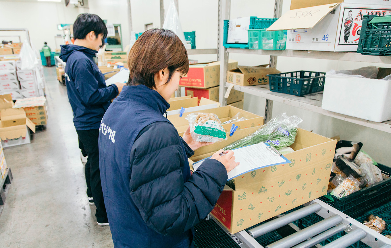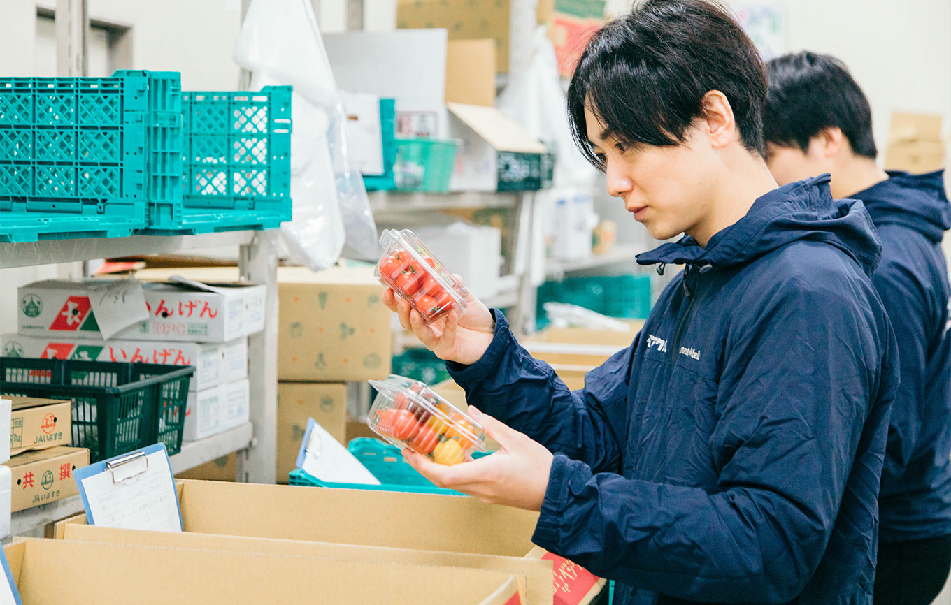 冷蔵庫内の各種配置を正しく管理し、仕分けを担当するスタッフが、固くて重たい大根や玉ねぎのような野菜から仕分けを始め、水菜やトマトのようなデリケートな野菜を仕分けるというオペレーションを徹底しています。