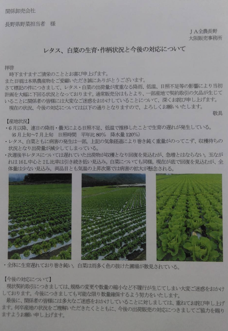 この先、キャベツがヤバくなるよとか