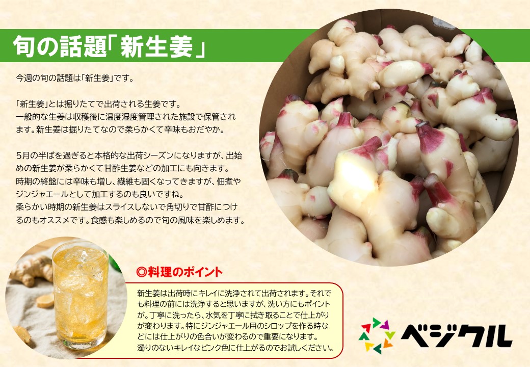 甘酢生姜に使う場合は繊維が柔らかく辛味もおだやかな出始めから最盛期までがオススメです。